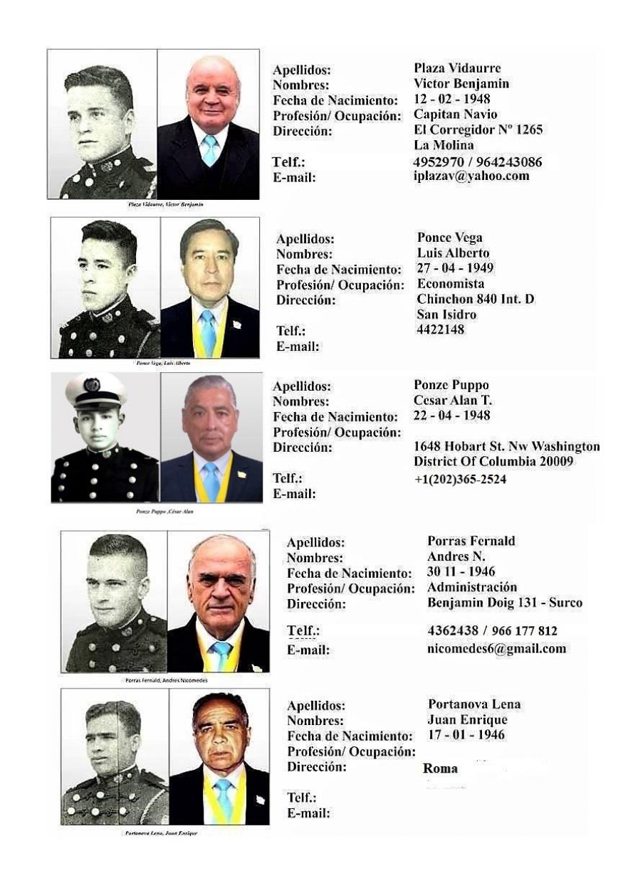 Ello me hizo pensar que han pasado 55 años y ya no somos los mismos. Nos reconocemos los que cotidianamente nos comunicamos de una forma u otra. Ello me ha llevado a copiarles un directorio con fotos que se hizo en el 2014. Muchas fotos actuales las tomo Pedro Caballero y nos regalo una linda